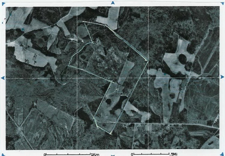 The photo below is a boundary reference. You can see the pond on the lower part. The lease house is a little to the upper left of the pond dam. The only public road through the property is at the very bottom of the tract.